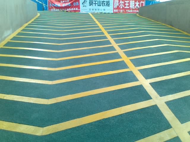 還有一種措施是以前用的環氧樹脂加沙做出的防滑坡道,曾風靡一時,但是,環氧樹脂沒有耐候性,耐壓性不夠,使用時間很短就會出現褪色起殼等現象,這些都不是很好的防滑措施。