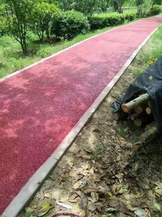 (3)在級配石上鋪設50mm厚彩色透水層